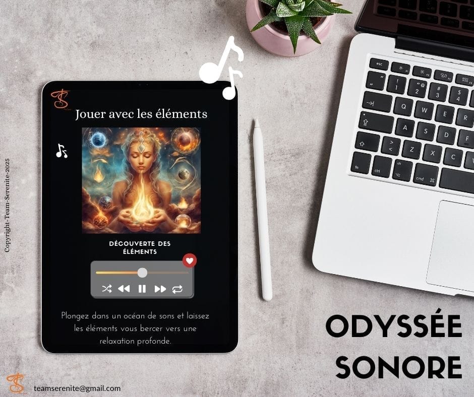 Vous êtes à un clic de plonger dans une expérience transformative où les sons des Terre, Eau, Feu, Air et Éther vous guideront vers une harmonie profonde entre votre corps, votre esprit et votre âme.